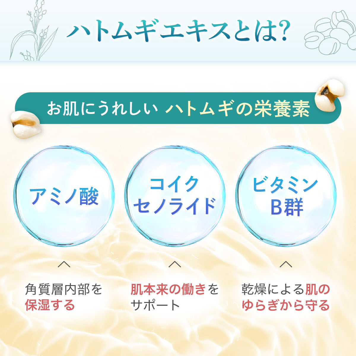 北海道産ハトムギが持つたっぷり美容成分がしっとり・なめらか肌に導きます。